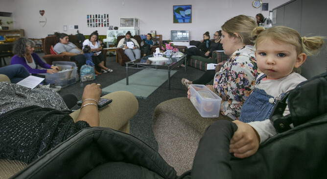 First-time mother Alamoni Taufa, 19, says she doesn’t know many women her age who are pregnant, so the course is helping connect her with a network of young people going through the same experience. Te Arani Edwards is pregnant with her fifth baby. She says she keeps coming along to the course during each of her pregnancies because she continues to learn, and enjoys supporting the new mums.